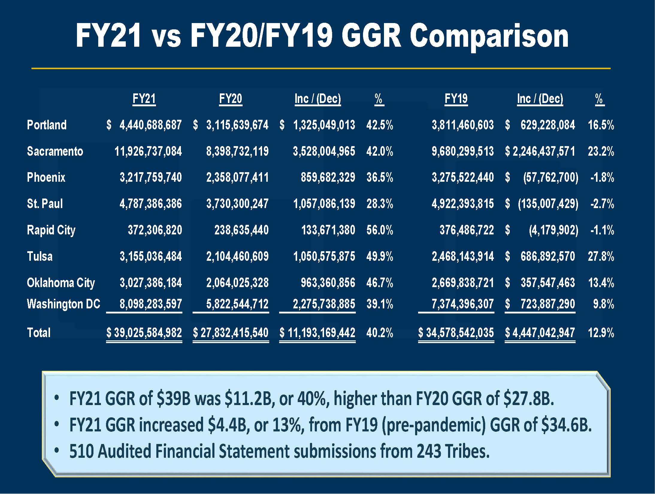 News Release: 2021 Indian Gaming Revenue Jumps to Record High $39 billion, Increases 40% (link)