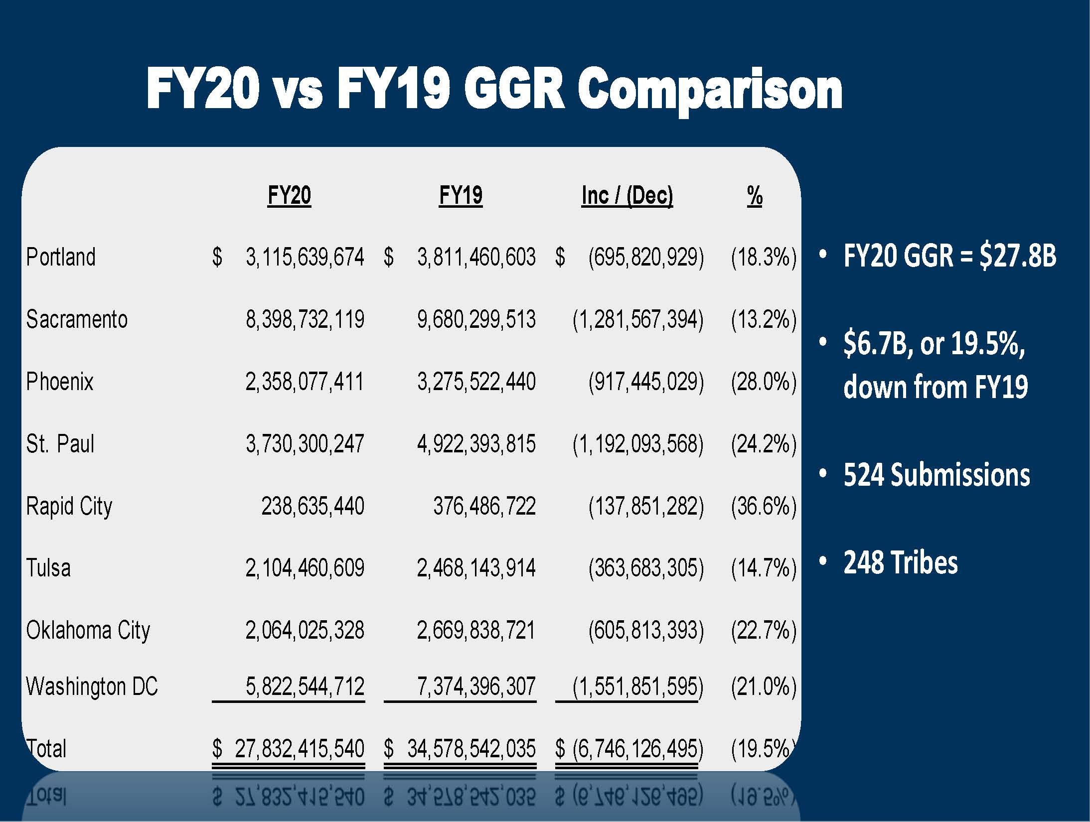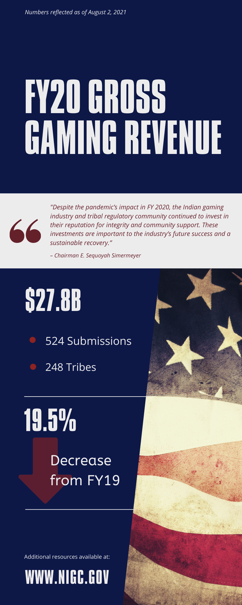 News Release: 2020 Indian Gaming Revenues of $27.8 Billion Show a 19.5% Decrease (pdf)